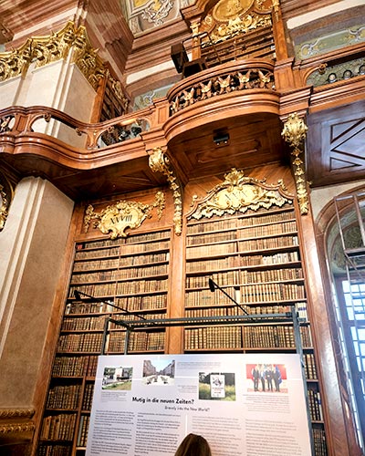 הספריה הראשית מדהימה ביופיה: מעוצבת בסגנון בארוקי מפואר, עם פסלים מרשימים, ספריות עצומות, ציורי תקרה ועיטורים מוזהבים. בין היתר מוצגים במקום גלובוסים ופריטי ארכיון מעניינים שמוסיפים לחוויה. ביקור של כחצי שעה מקסימום מספיק להתרשמות מלאה מהיופי וההדר של המקום.