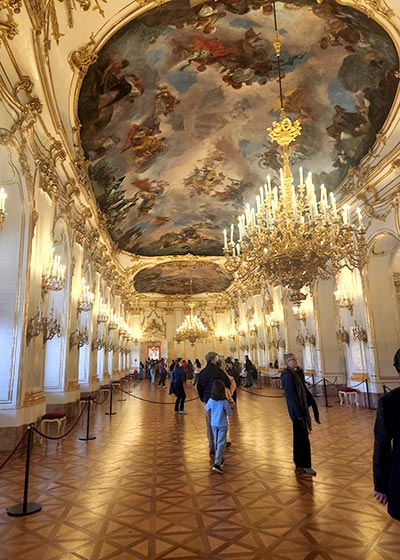 נכנסנו לארמון המפואר, קיבלנו מכשיר אודיו (באנגלית) ושוטטנו בין החדרים. הכל זוהר ומפואר עד לרמת הקיטש, עם שפע זהב, קטיפה ומראות, אבל אין ספק שמדובר במקום מרשים בהחלט שמשקף את העושר של שושלת הבסבורג.