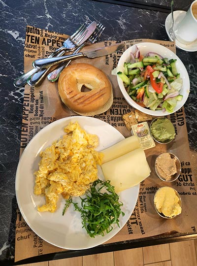 לאחר שהפקדנו את המטען בחדר המזוודות של המלון (הצ'ק-אין לחדר מתבצע רק מהשעה שלוש), יצאנו לרחוב טאבור, הלב השוקק של האזור היהודי בוינה. ישבנו לארוחת בוקר במסעדת "ואהבת", הצמודה לבית חב"ד – שלוש דקות הליכה בלבד מהמלון. הזמנו ארוחת בוקר ישראלית: פשוטה, טעימה ומשתלמת.